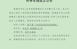 一、基本情況安居路德福社區(qū)與交警大隊之間(約10000平方米,已完成水泥地面硬化約5000平方米,其余為碎石硬化)、皇茶大道區(qū)人民醫(yī)院東側(cè)(約6200平方米,已完成水泥地面硬化)兩處臨時停車場,已完成配套道閘、監(jiān)控、門衛(wèi)室、廁所的建設。上述兩處停車場性質(zhì)為臨時停車場,無固定使用時間期限,如遇政府對上述2處臨時停車場有新的規(guī)劃使用方案,則隨時由我公司收回交由相關單位進行處置。現(xiàn)公司擬對上述兩處臨時停車場一并對外招租。二、招租要求(一)承租方負責現(xiàn)場其設備設施的日常管理維護,并承擔安全生產(chǎn)和安保責任,負責門前三包所有區(qū)域的衛(wèi)生管護。以上所產(chǎn)生費...